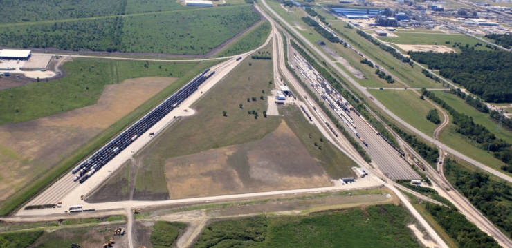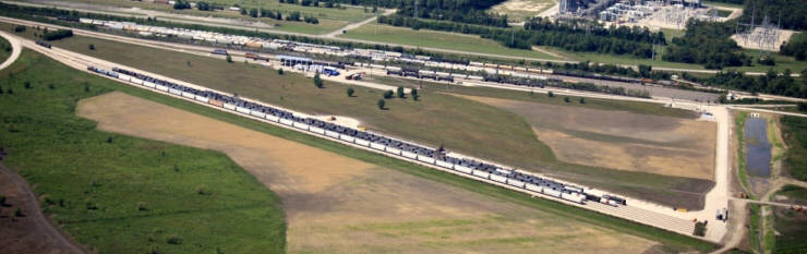 This LOGISTICS PARK located in Baytown, Texas represents a typical industrial track project for our TRACK SERVICES GROUP. Phase I is shown in the above photograph and consists of approximately 100 cars of interchange, 300 cars of storage, and an industrial lead that serves other properties within the park. Phase II doubled the interchange capacity of the park. Phase III is currently underway with approximately 300 cars of additional storage capacity. This particular industrial track project is served by both the Union Pacific Railroad and the BNSF Railway Company and utilized all of our track consulting services: