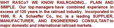 RASCO... PUTTING CUSTOMERS ON THE RIGHT TRACK... FROM THE START.